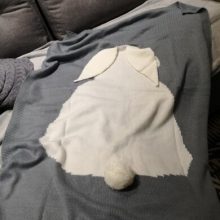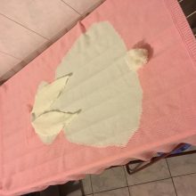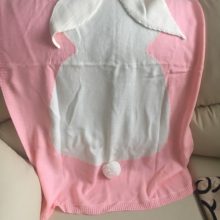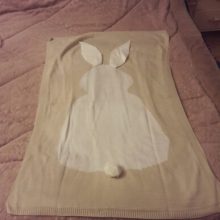 very cute пледик!) soft, all stitched, thread not no stick up, all made neat, have a small smell, but it change. i'm very satisfied. bunny 2 пришёл fast.
