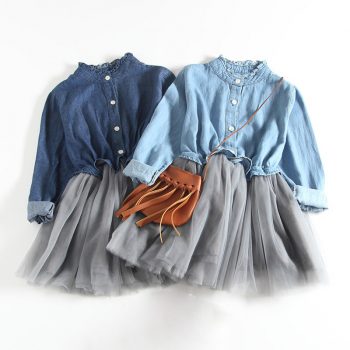 Girl’s Denim And Mesh Princess Dresses