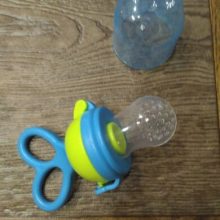 neatly made pacifier, can fit into it piece jabłuszka or banana. colors as the photo. recommend