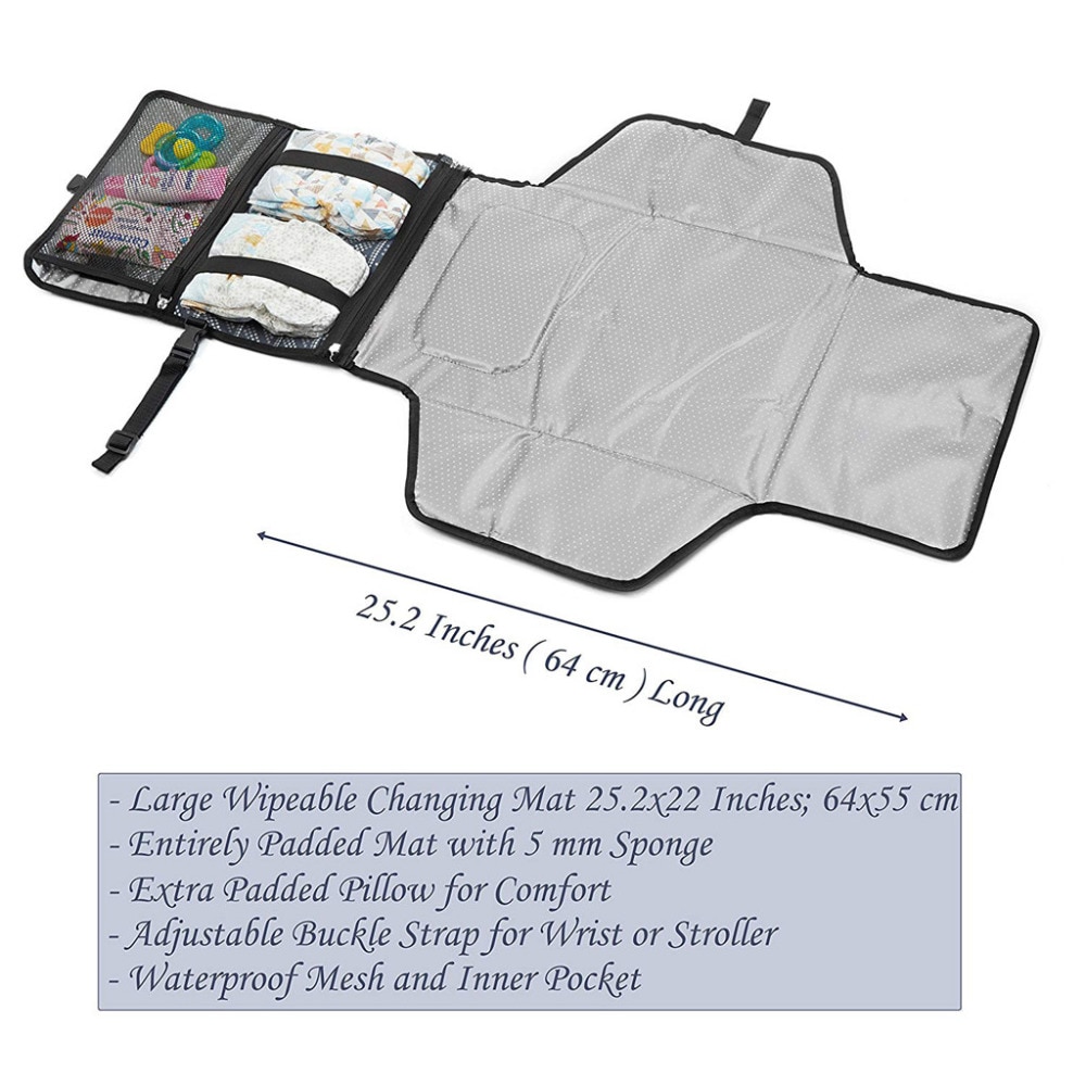 I was thinking to buy single use and disposable pad, but it wastes money if I buy too much and don't use all. this diaper changing pad is reusable, great for travel, pretty light, and easy to fold and carry. no need to worry about the dirtiness of the changing table. easy to clean, just use the wet towel to wipe it down. I can use it anywhere, and I always carry it when I go out with my baby. I can easily store it at my diaper backpack or just hang in at the handle of car seat.